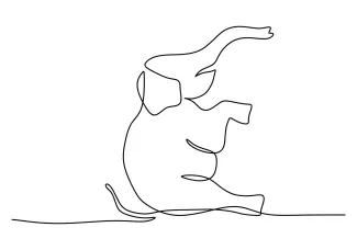 This picture features a standing elephant with its legs and trunk clearly visible. A single line is used for the full shape. Elephants in this pose help artists study structure and form. The technique supports clarity and consistency in drawing.